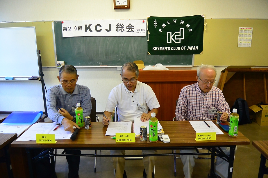 左から 議長 JH4PCD、会長 JR3KQJ、副会長 JA8AJE。